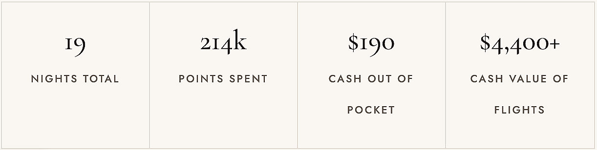 I found award space on the exact dates we wanted, right around the F1 race. I booked it. And then I built the rest of the trip around it.